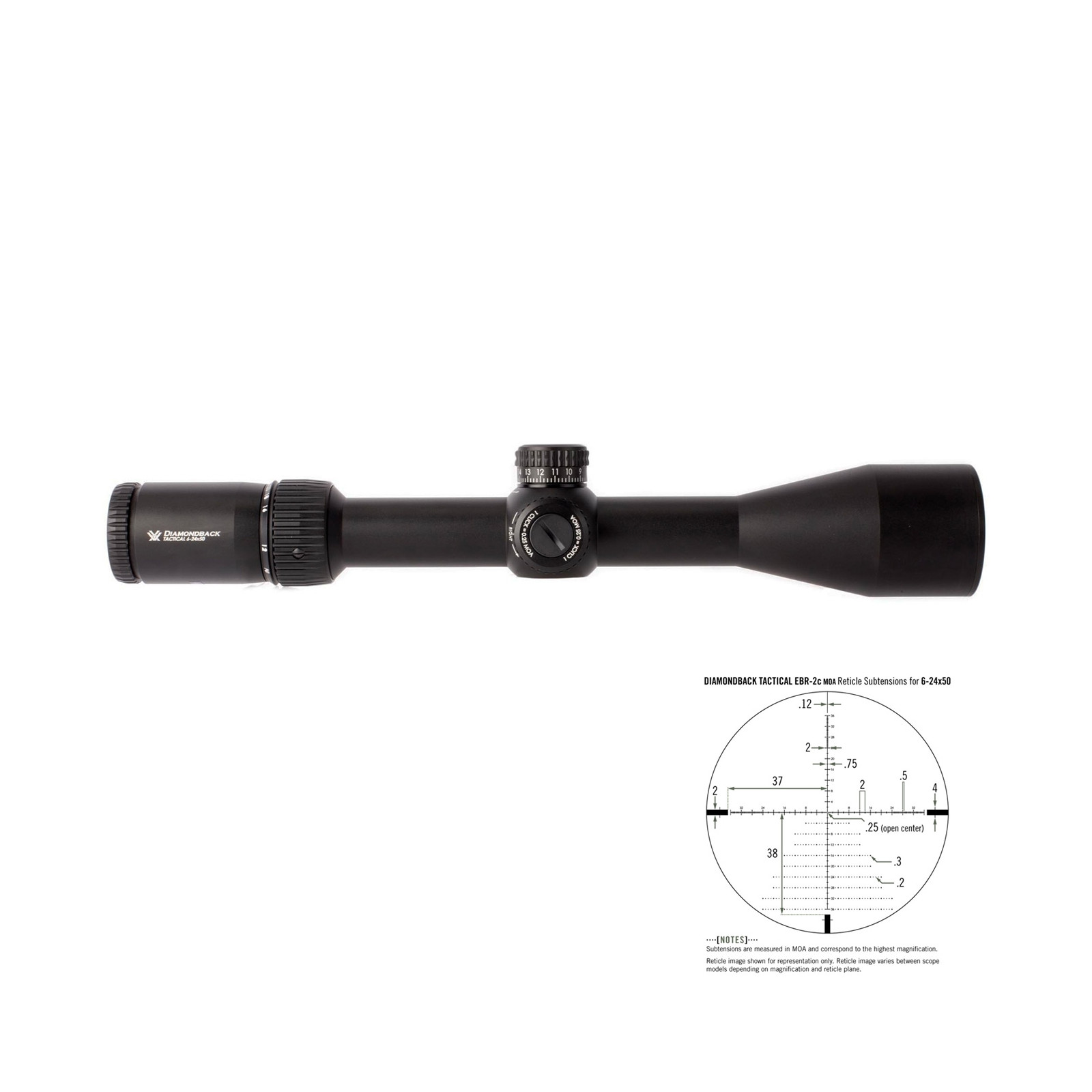 | Regolazioni | 1/4 MOA per click 15 MOA per giro di torretta |