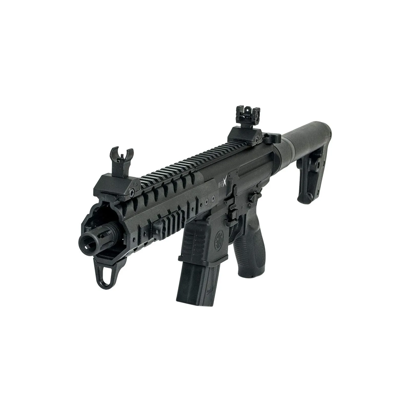 Realizzato in metallo, con mire abbattibili e slitte Weaver/Picatinny per il montaggio di accessori, questo moderno semiautomatico a canna rigata è una replica perfetta della famosa carabina tattica originale, in grado di raggiungere fino a 575 fps di velocità in volata.