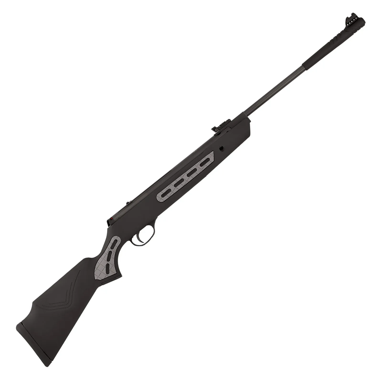Carabina break barrel a colpo singolo dotata di calcio sintetico ambidestro con poggiaguancia Montecarlo su entrambi i lati, intarsi in gomma morbida su impugnatura ed astina, calciolo in gomma per l'assorbimento del rinculo, scatto regolabile, sicura manuale, sicura di armamento automatica e predisposizione per il montaggio di un'ottica da puntamento.