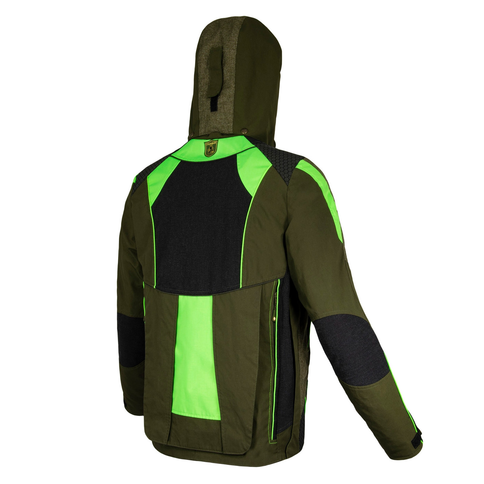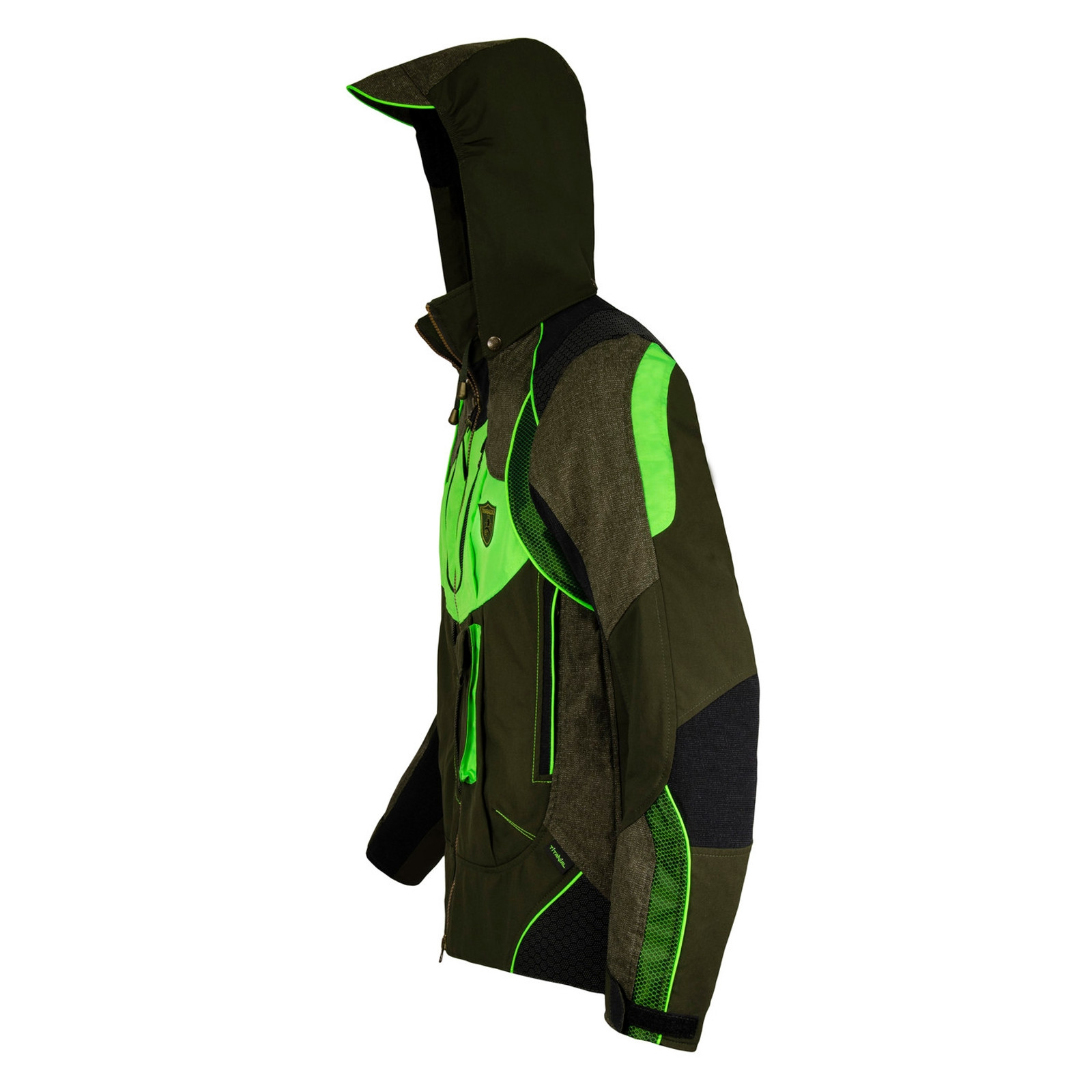 NEMESIS H.V. da spazio a tutte le esigenze venatorie grazie alla zip laterale per aumentare la circonferenza della giacca, agevolando l'utilizzo della cintura porta colpi, ed al carniere espandibile a doppia entrata con scomparti separati per ampi volumi di carico.