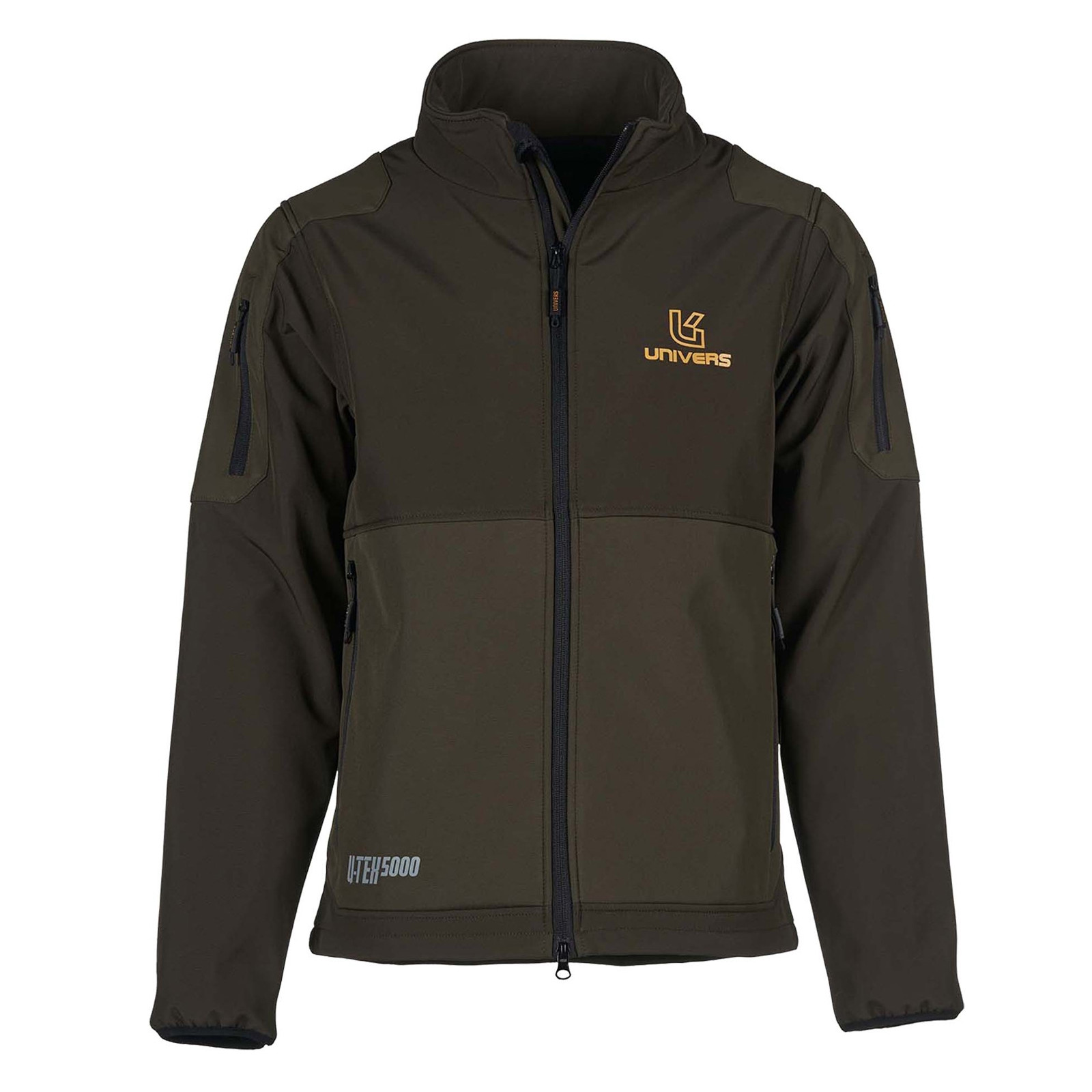 Giacca da caccia foderata, realizzata in tessuto softshell elasticizzato doppiato con pile e membrana impermeabile e traspirante Univers-Tex.