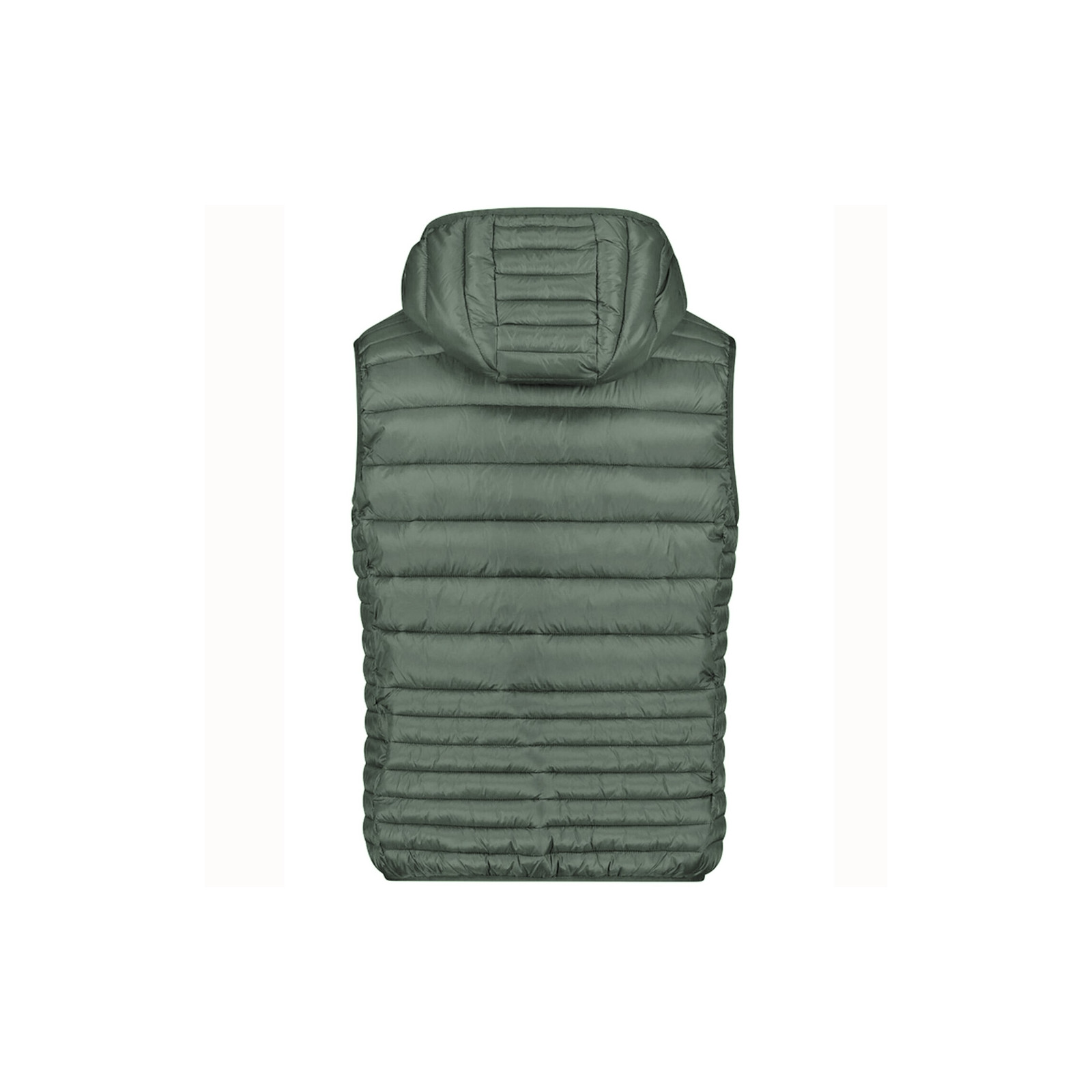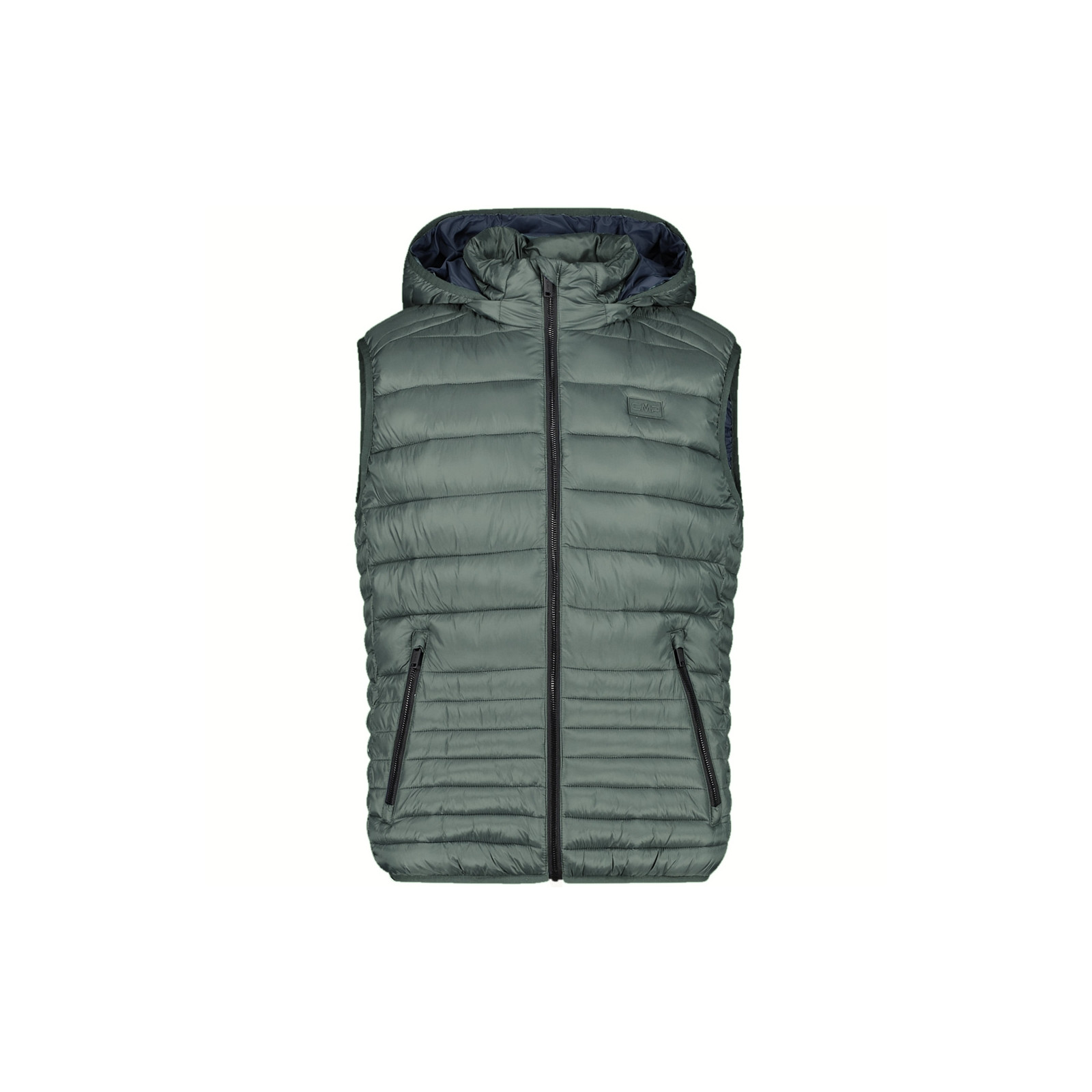 Gilet con cappuccio staccabile e imbottitura sintetica 3M Thinsulate, simile alla piuma per struttura ma in grado di garantire isolamento anche da bagnata. Trattamento esterno (PFC free) e 2 pratiche tasche laterali a zip completano il capo.