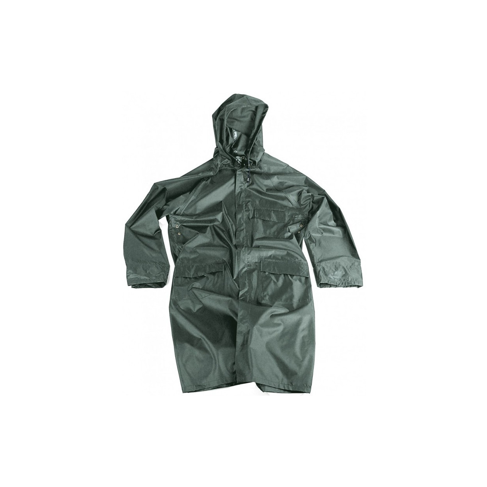 Impermeabile lungo 100% nylon PVC con spalmatura interna e termosaldatura alle cuciture.