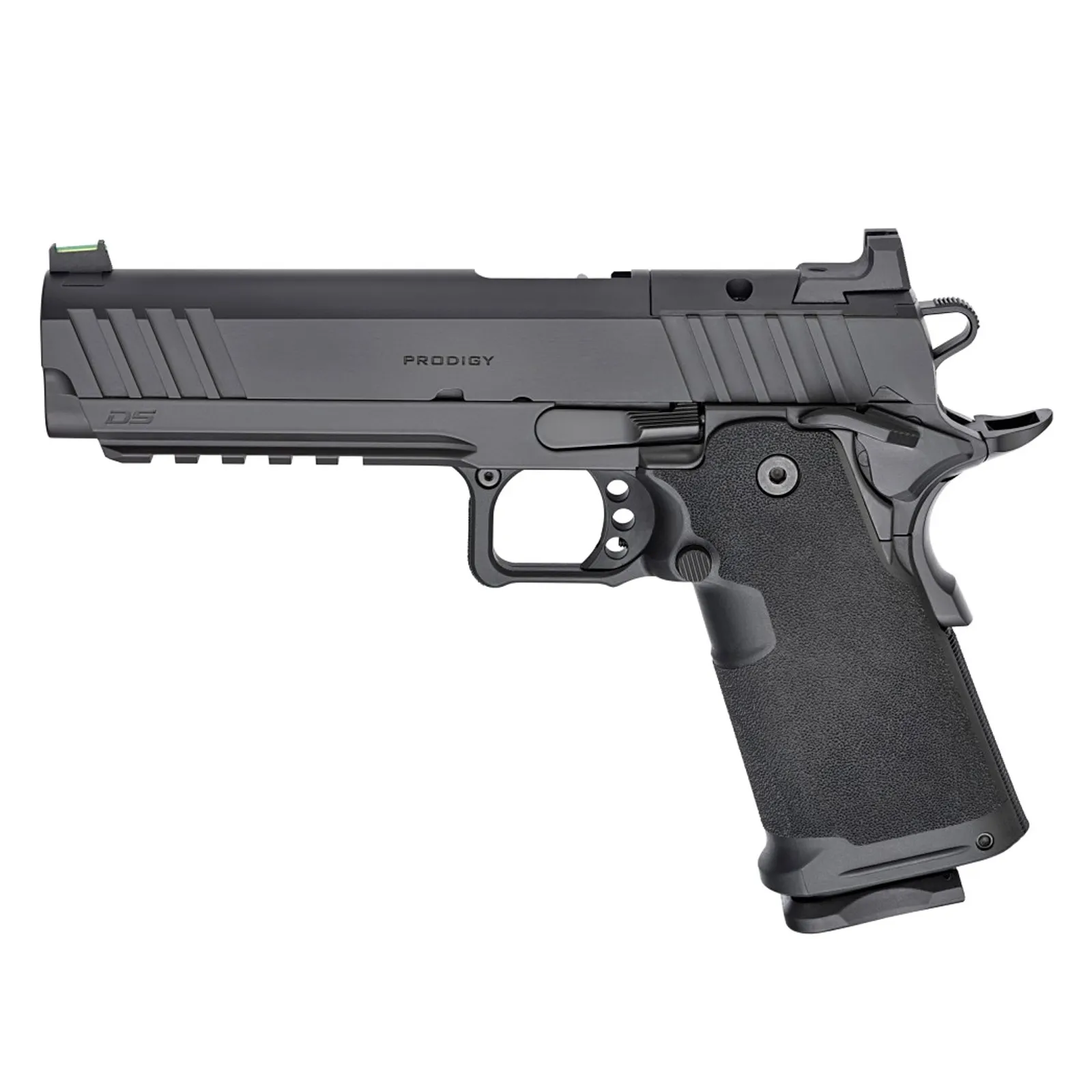 Una semiautomatica di eccezionale qualità, con caratteristiche votate alla performance ed all'affidabilità: modulo dell'impugnatura in polimero altamente grippante e montato sul telaio in acciaio forgiato, doppio caricatore bifilare da 17 e 20 colpi, canna conica bull barrel di tipo Match da 5" in acciaio inox forgiato e compensata integralmente (così come il carrello) per ridurre l'innalzamento al momento dello sparo, sicura ambidestra, pulsante di sgancio-caricatore reversibile, cane alleggerito, finitura Cerakote sulle parti in metallo per una maggior resistenza a graffi e corrosione, piattaforma AOS che utilizza piastre compatibili con i red dot più diffusi in commercio, slitta Picatinny sottocanna.