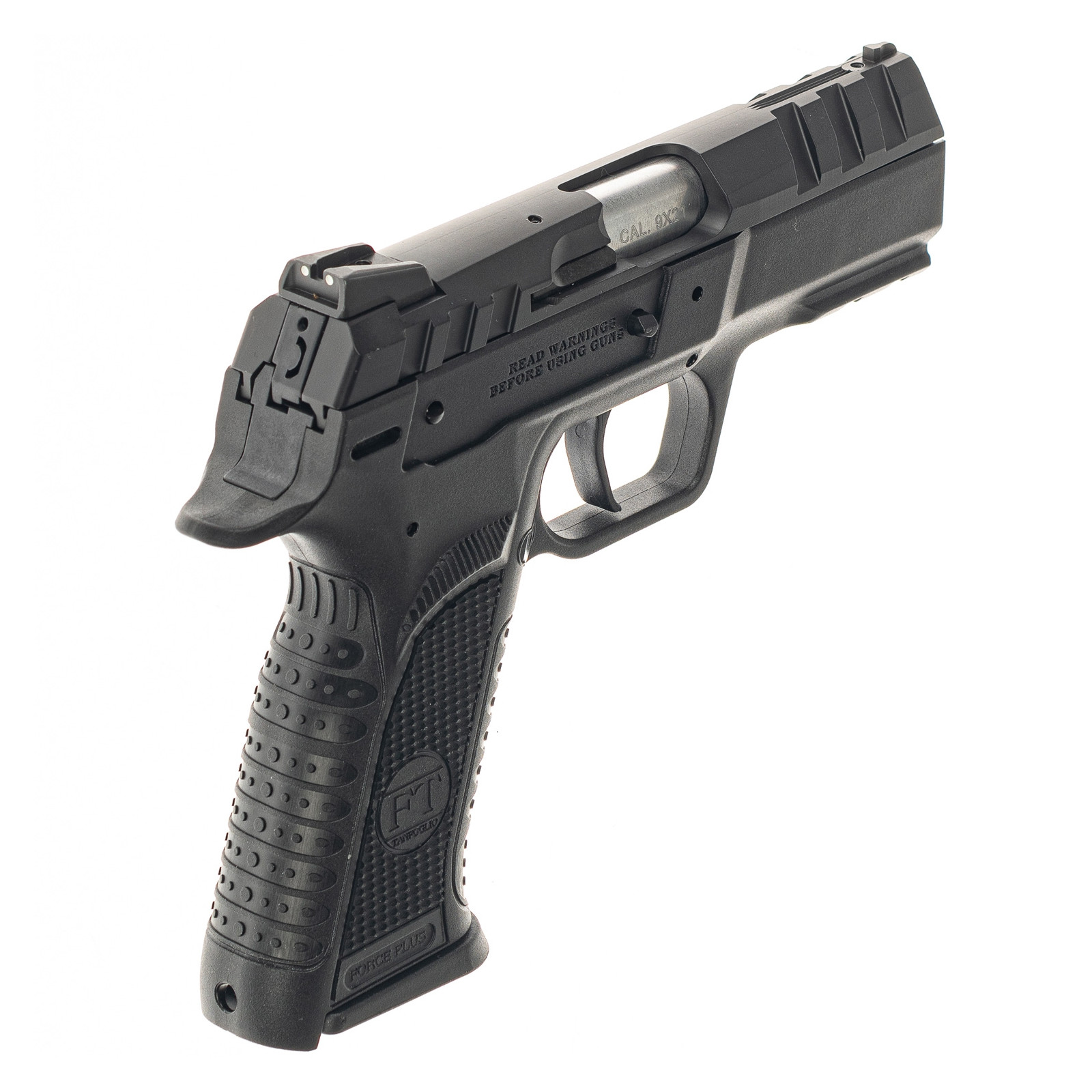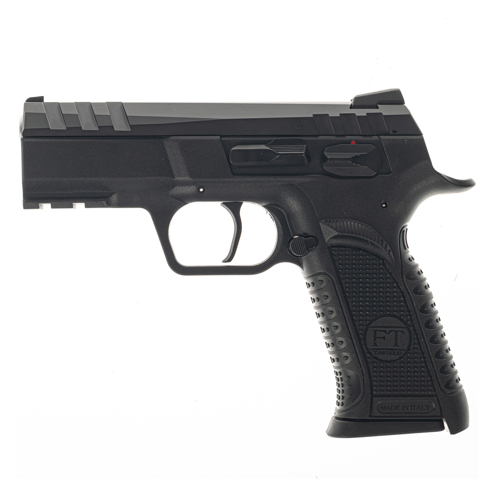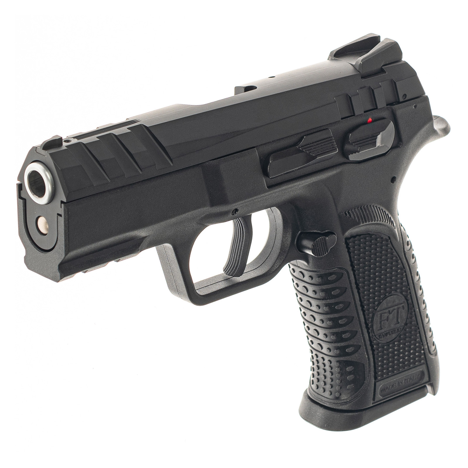 Fusto in polimero e carrello in acciaio, sicura automatica al percussore e manuale sul fusto.