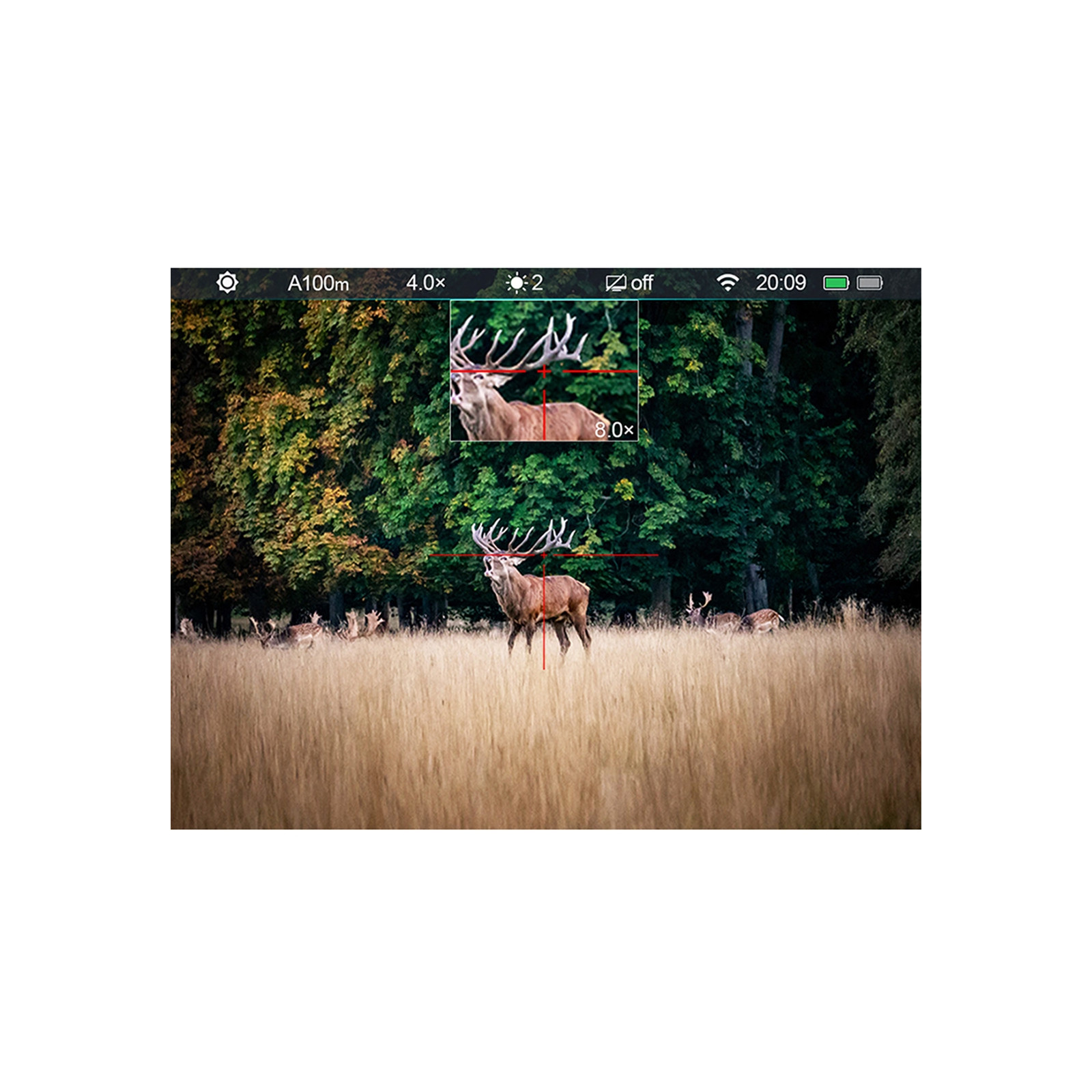 Tarature su 3 profili personalizzabili con 6 tipi di reticoli in 4 colori ciascuno, funzioni integrate "freeze zeroing" e "picture in picture" in cui all'immagine principale ne viene sovraimpressa una seconda a lato dello schermo, per osservare in modo più nitido i dettagli senza mai perdere di vista la scena primaria.